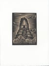 White BFK Rives Paper, Black Ink and light brown Ink Wash